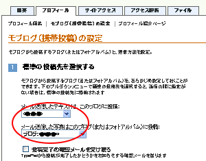 | 次に、 「コントロールパネルの操作」の中の 「モブログ(携帯からの投稿)設定を編集 する」をクリックして下さい。 |